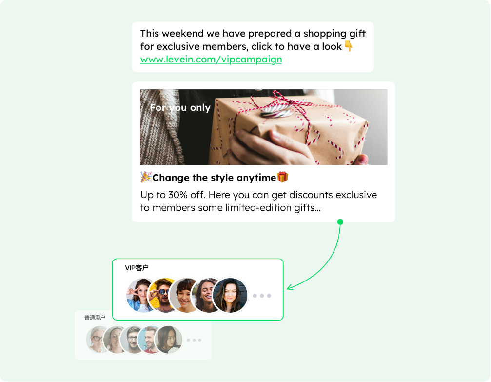 优势三:自定义多种消息类型(如优惠券/红包卡片消息、商品卡片消息、小程序卡片消息等)。